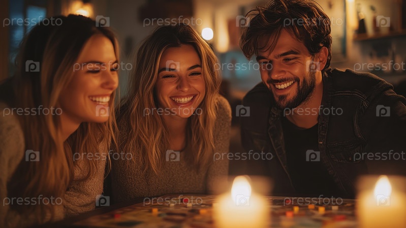 Уютный семейный вечер с настольной игрой и атмосферой свечей