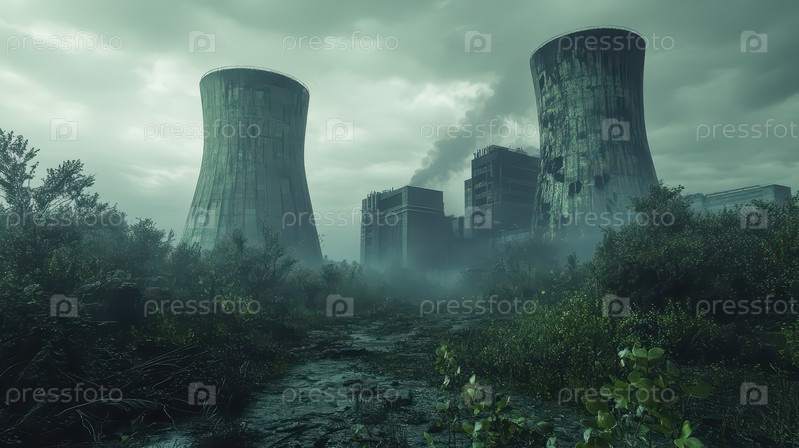Заброшенная атомная электростанция, окруженная зарослями растительности