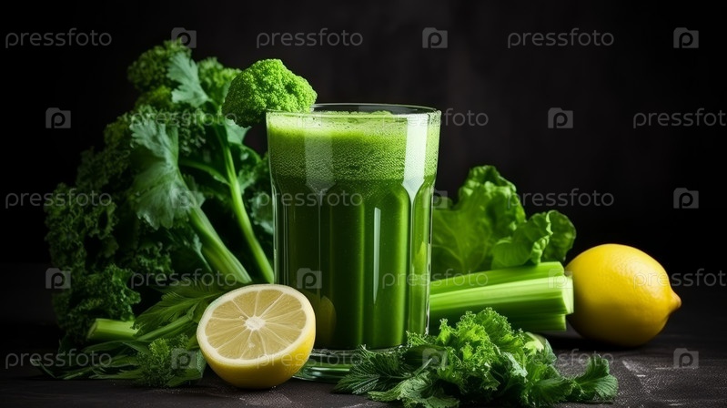 Полезный зеленый сок из сельдерея в стакане