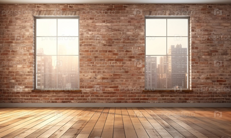 Интерьер комнаты с незаконченным ремонтом, кирпичной стеной и окном