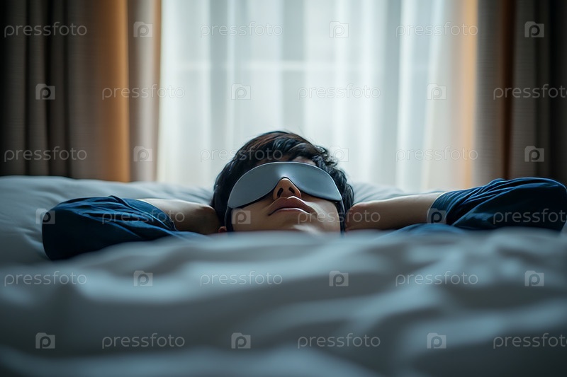 Человек мирно отдыхает в постели, наслаждаясь безмятежным моментом комфорта и расслабления в уютной обстановке