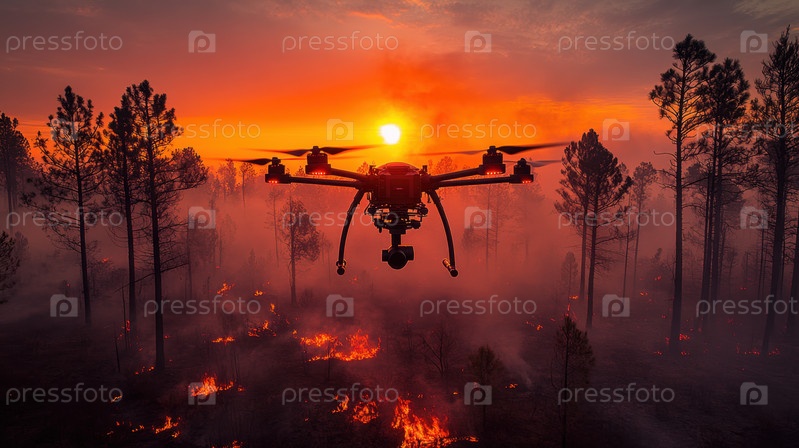 Беспилотный летательный аппарат для наблюдения за лесным пожаром на закате