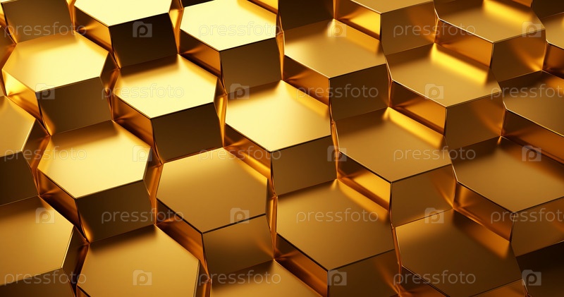 Золотая шестиугольная ячейковая плитка на роскошном декоре интерьера Золотые металлические соты