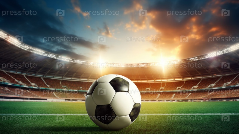 Изношенный футбольный мяч на траве стадиона с протекающим светом