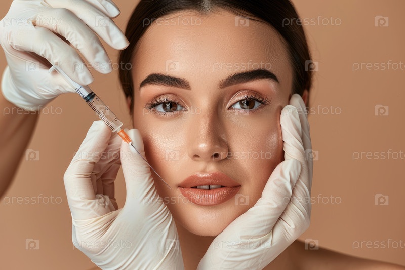 Человеку делают косметическую инъекцию в клинических условиях, руки в перчатках находятся на его лице