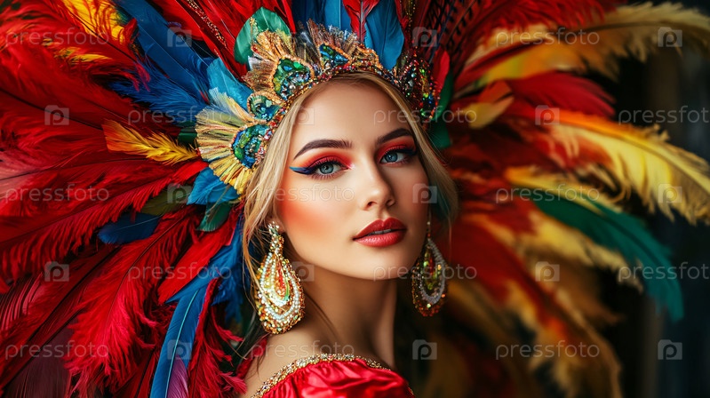 Изысканный красочный головной убор из перьев в честь традиционного яркого культурного фестиваля