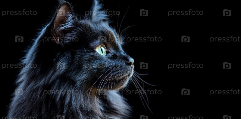 Таинственный черный кот с загадочными зелеными глазами в тени