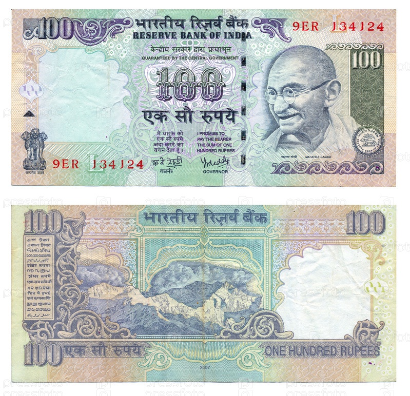 Купюра 100 рупий, национальная валюта Индии