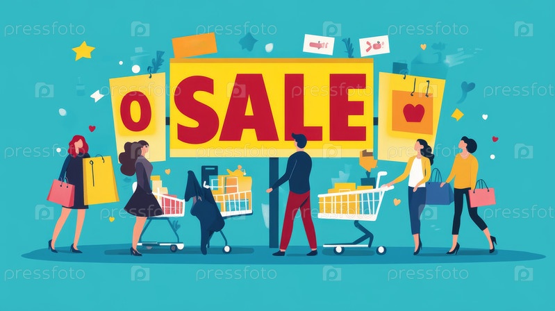 Яркая торговая сцена, иллюстрирующая динамичную распродажу