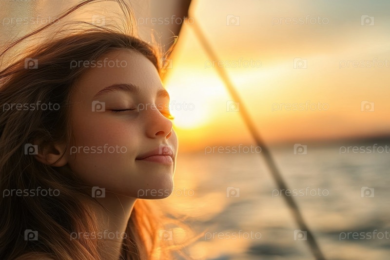 Безмятежный отдых на закате, парусное приключение в море