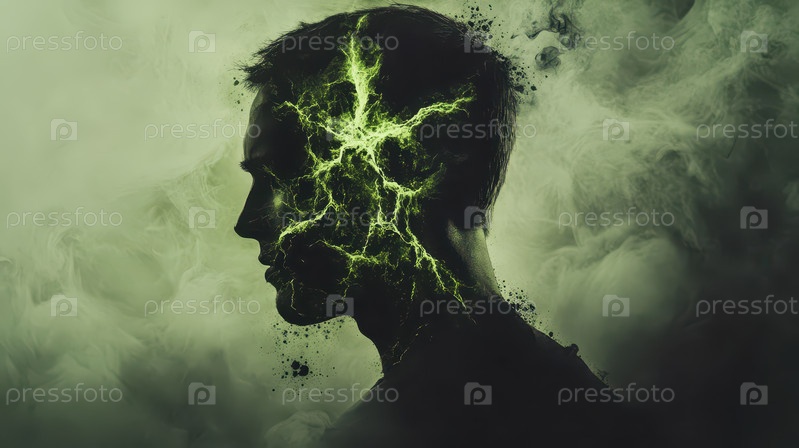 Абстрактный человеческий профиль с раскалывающимся разумом