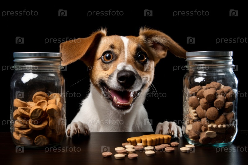 Любопытная собака с удовольствием лакомится любимым лакомством, смакуя вкусную начинку из банки с чистой радостью