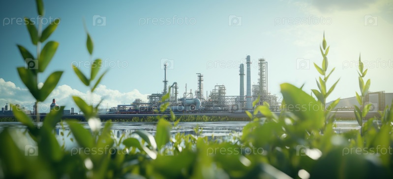 Зеленая промышленность Эко Энергетический завод Хорошая окружающая среда озоновый воздух низкий углеродный след широкий для баннера