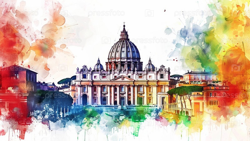 Ватикан, Рим, Италия. акварельная иллюстрация