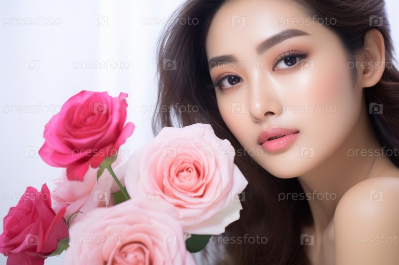 Крупным планом лицо молодой красивой женщины со здоровой чистой кожей