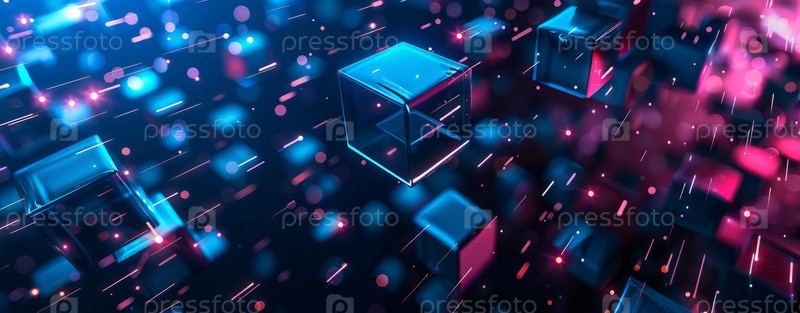 Абстрактный технологический ландшафт с элементами дополненной реальности, виртуальной реальности и искусственного интеллекта для инновационных цифровых концепций