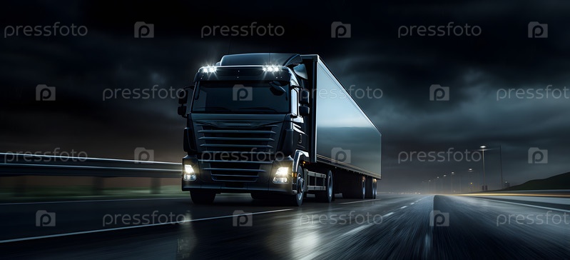 Мчащийся современный скоростной грузовик на размытом фоне