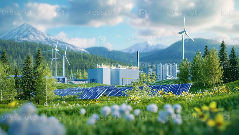Завод использует возобновляемые источники для выработки электроэнергии в цветущей долине