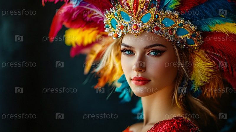 Изысканный красочный головной убор из перьев в честь традиционного яркого культурного фестиваля