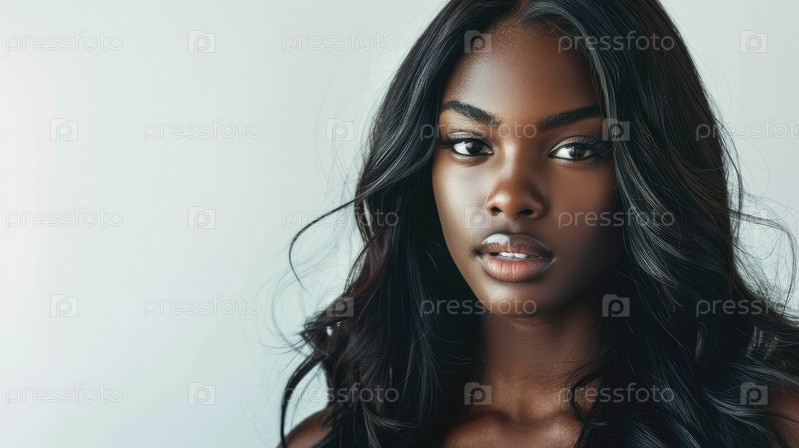 Шелковистые темные волосы в элегантном движении. Студийный портрет