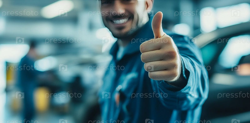 Жест поднятого вверх большого пальца в мастерской