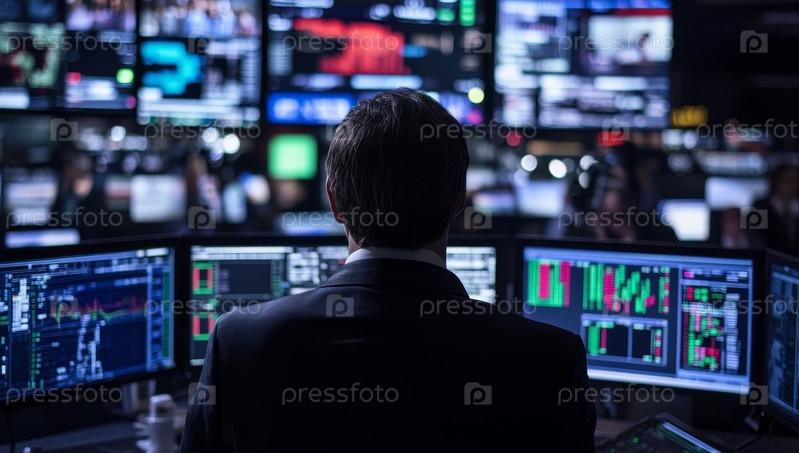 Современная диспетчерская с несколькими экранами данных для высокотехнологичных операций