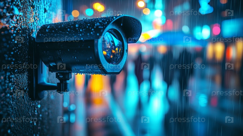 Камера ночного наблюдения в дождливом городском окружении