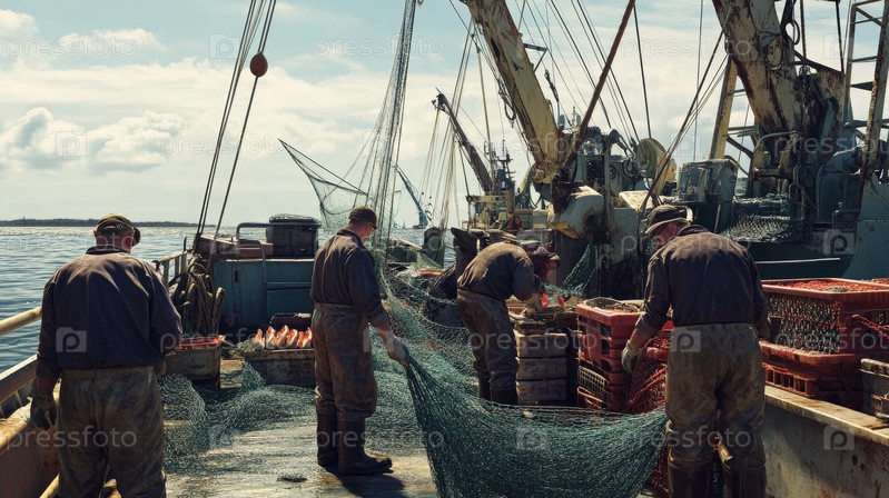 Трудолюбивые рыбаки, плавающие по морю на традиционном рыболовном судне