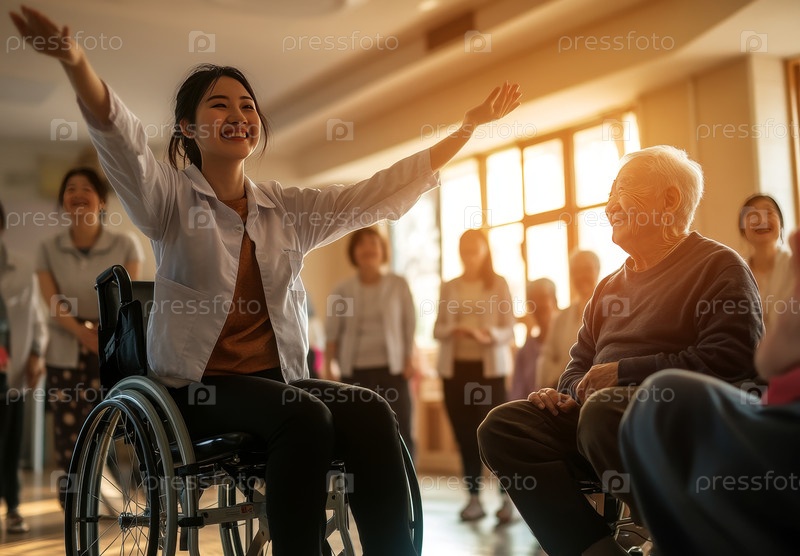 Заботливый медицинский работник проводит групповые упражнения для благополучия пожилых людей
