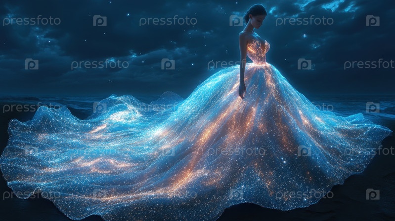 Очаровательное светящееся платье в небесно-фантастическом стиле