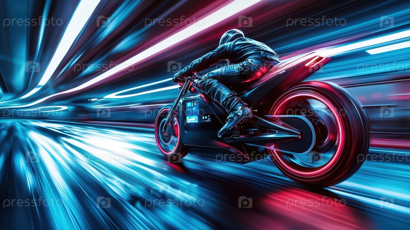 Футуристические гонки на мотоциклах в неоновых огнях города