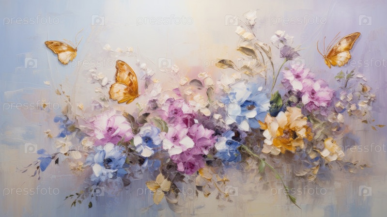 Картина с изображением букета цветов на синем фоне