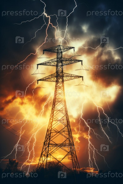 Эффектные линии электропередач на фоне яркого заката. Динамичное и мечтательное изображение возвышающихся опор линий электропередач, силуэты которых вырисовываются на фоне яркого неба в сумерках