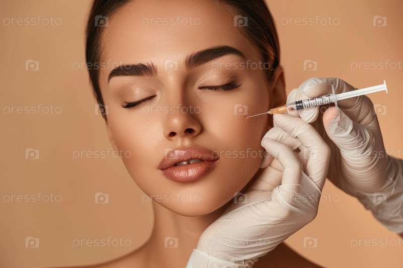 Человеку делают косметическую инъекцию в клинических условиях, руки в перчатках находятся на его лице
