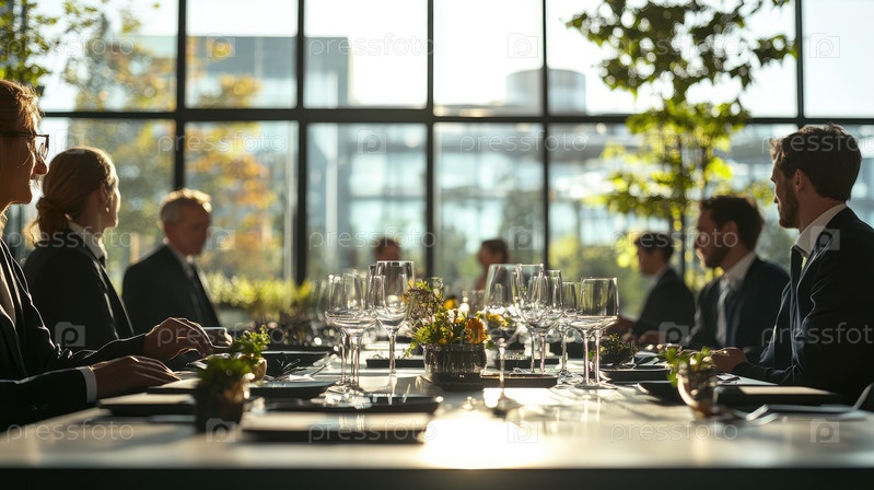 Элегантная корпоративная встреча с официальной обстановкой в современном зале