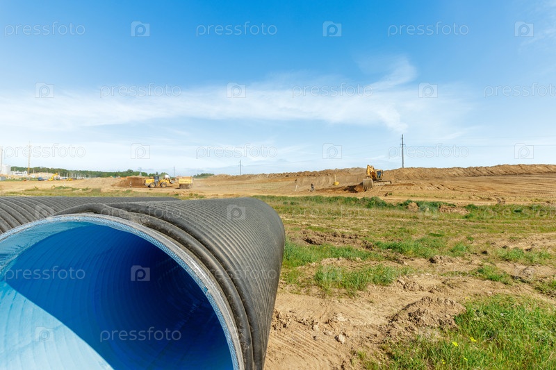 Изучите динамическую сущность современной инфраструктуры с помощью этого яркого изображения строительной техники в действии на оживленной площадке