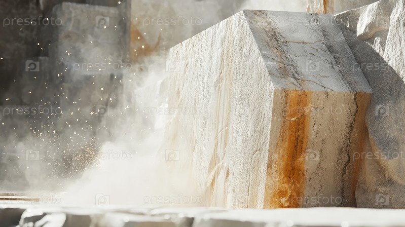 Откройте для себя красоту и первозданную силу природы с помощью этого потрясающего изображения, запечатлевшего добычу белого мрамора в карьере, освещенном золотистым светом восхода солнца