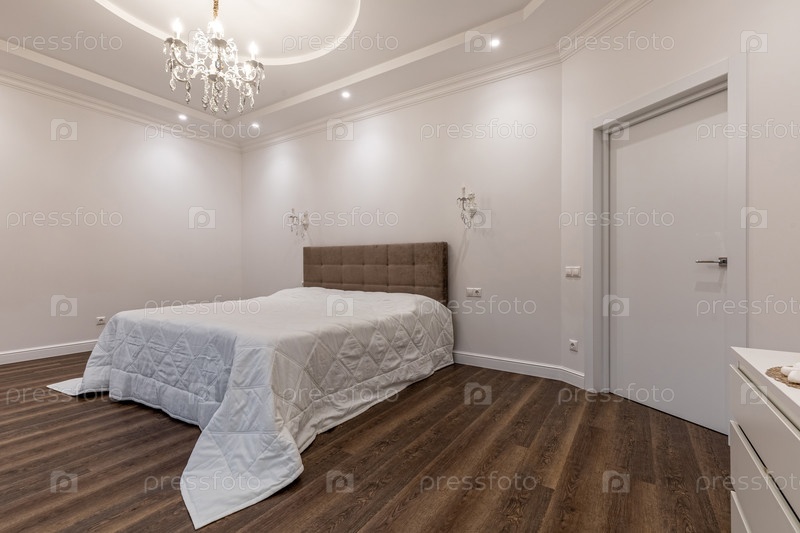 Элегантная спальня с люстрой и изголовьем с пуговицами