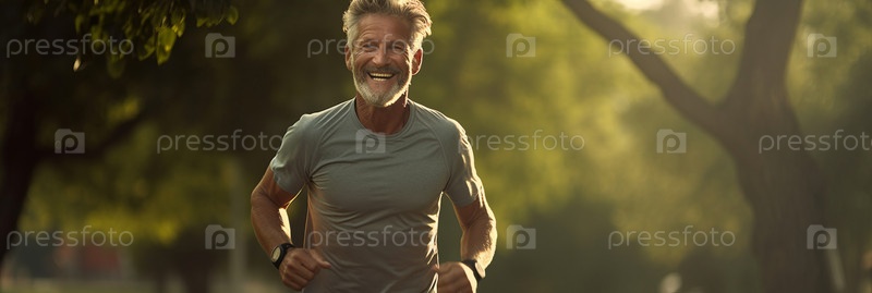 Портрет счастливого пожилого мужчины с седыми волосами и бородой в спортивной одежде