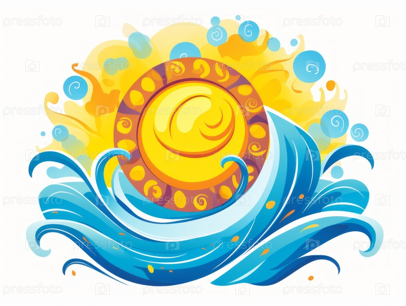 Иллюстрация в стиле витража с абстрактным солнцем, круглое изображение