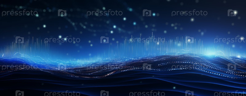 Абстрактный технологический ландшафт с элементами дополненной реальности, виртуальной реальности и искусственного интеллекта для инновационных цифровых концепций
