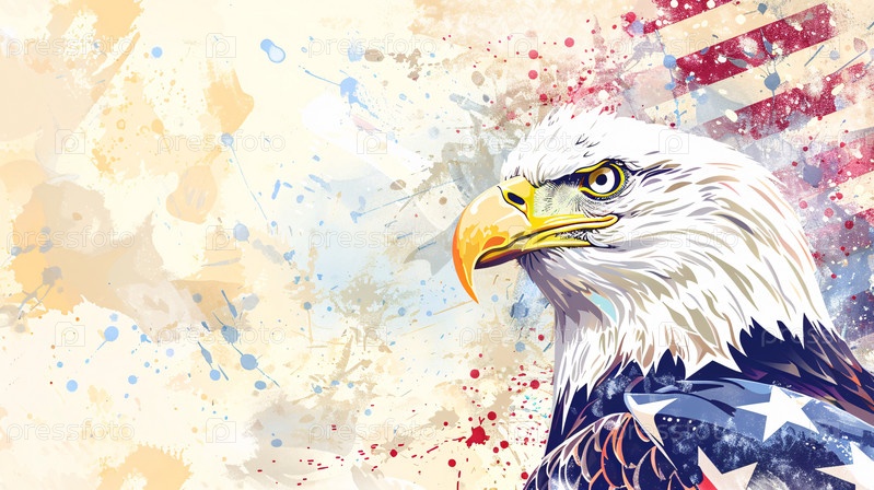 Белоголовый орлан на фоне флага США