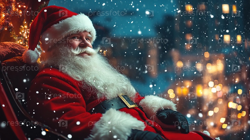 Санта-Клаус отдыхает в волшебной зимней стране чудес во время Рождества