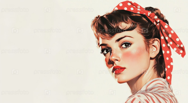 Винтажная иллюстрация женщины с красным платком в горошек