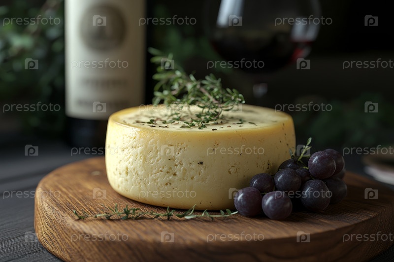 Деревенская подача сыра с виноградом на деревянной доске