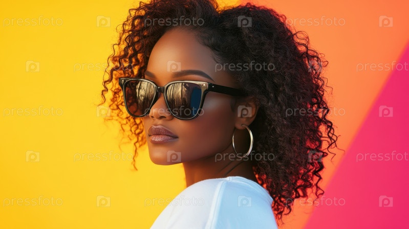 Это яркое изображение демонстрирует потрясающую палитру неоновых цветов, которые подчеркивают замысловатые локоны и шикарные модные аксессуары, создавая захватывающее визуальное представление для любителей современного стиля