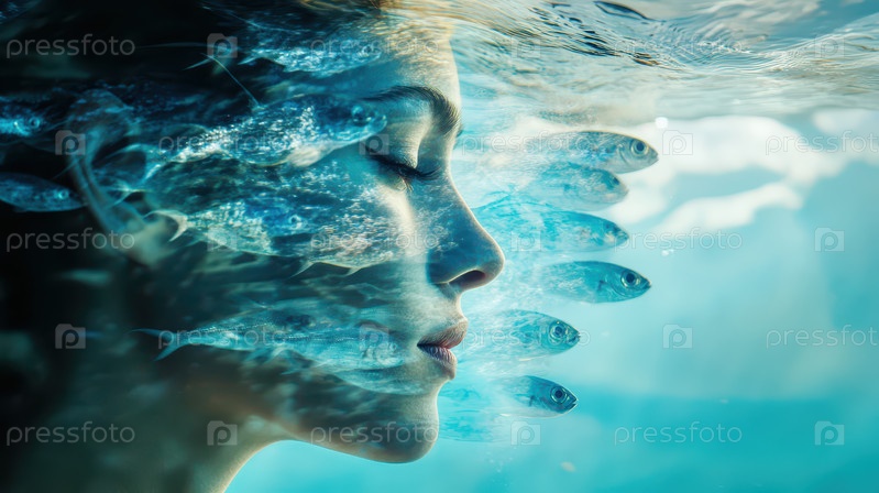 Лицо женщины, слившееся с подводным коралловым рифом