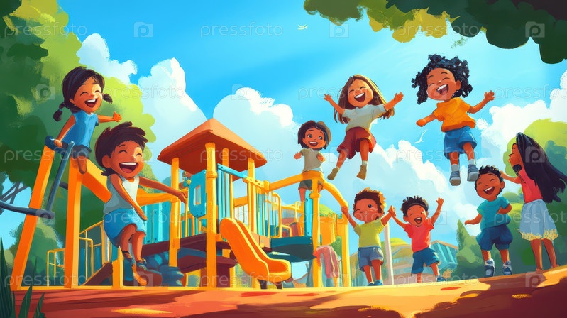 Дети играют и прыгают от радости на детской площадке