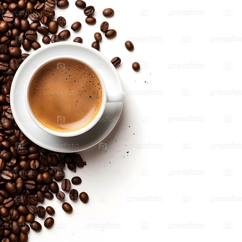 Белая чашка кофе на белом столе