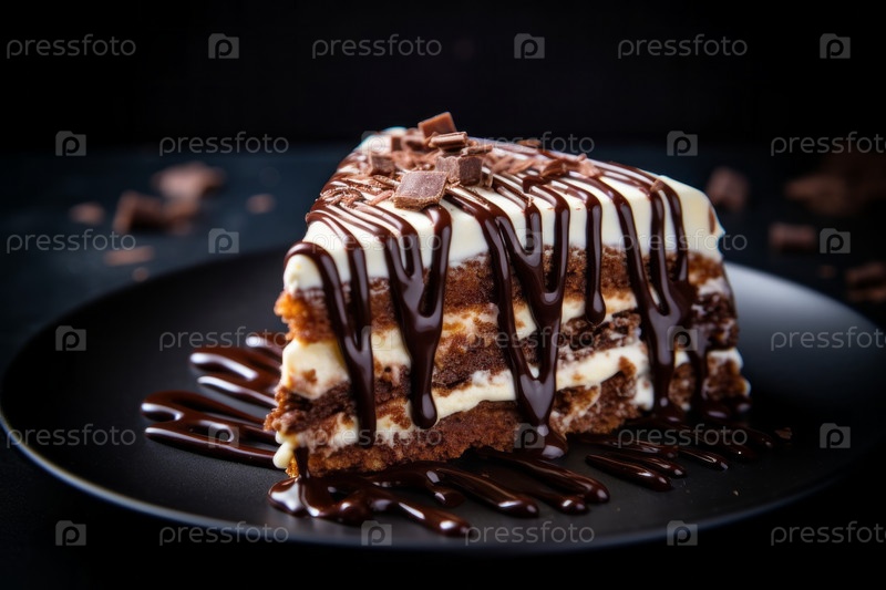 Крупный план восхитительного шоколадного торта с бархатистой глазурью из ганаша